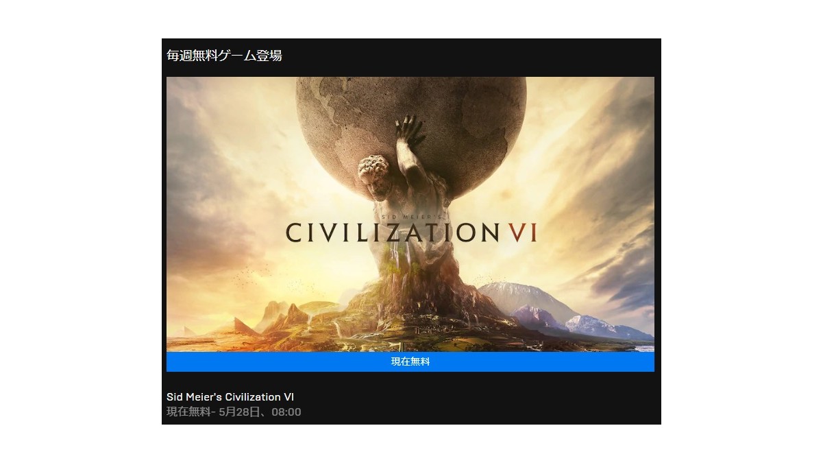 Epic Gamesストアで、新たな無料配布ソフトとして2K Gamesの定番ストラテジーゲームシリーズ最新作『シドマイヤーズ シヴィライゼーション VI』の無料配布が開始された。期間は来週金曜0時までの1週間。