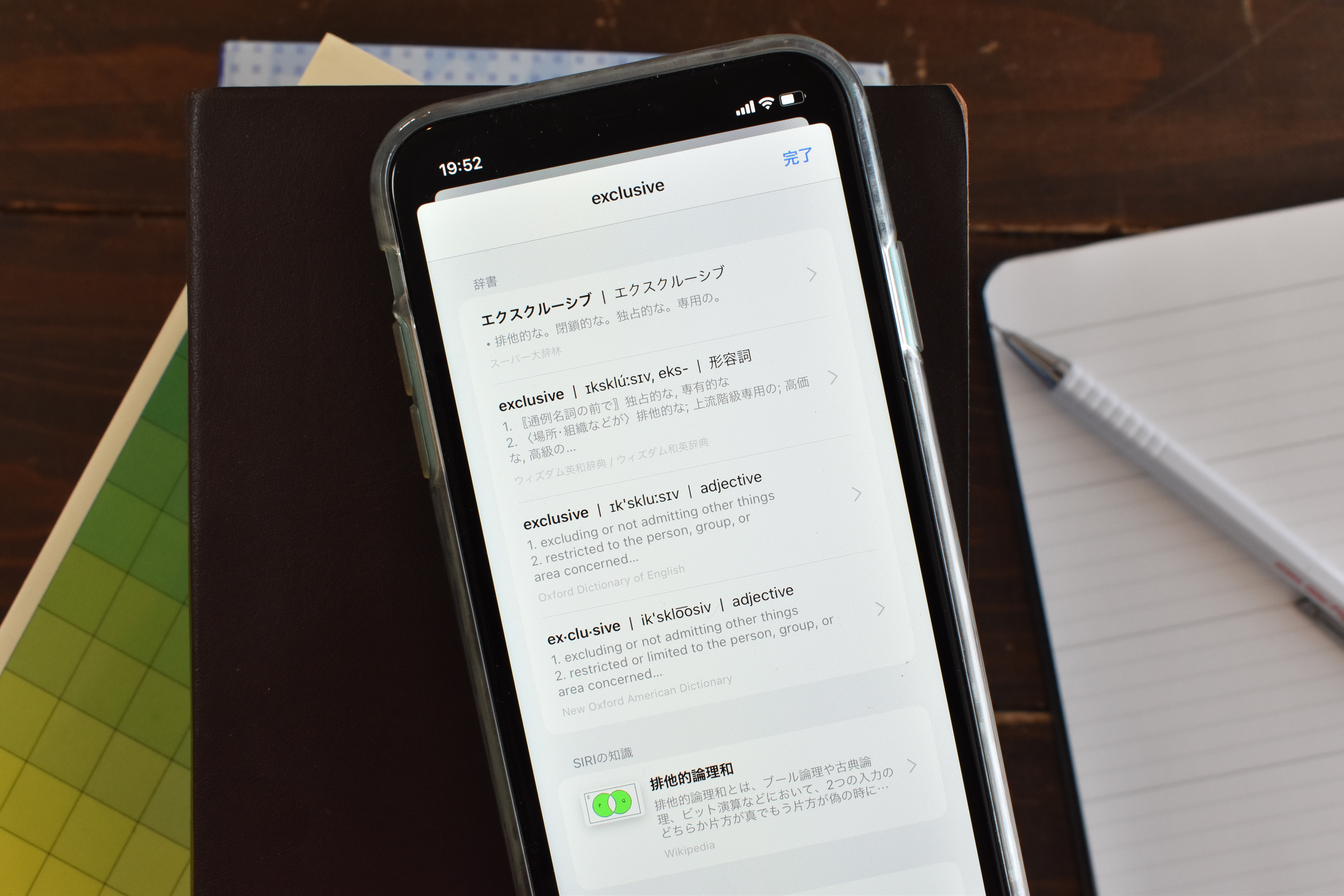 もし辞書だけの検索結果を見たいなら、「設定」の「Siriと検索」で「“調べる”の候補」をオフにすると、Siriからの提案が非表示になります。