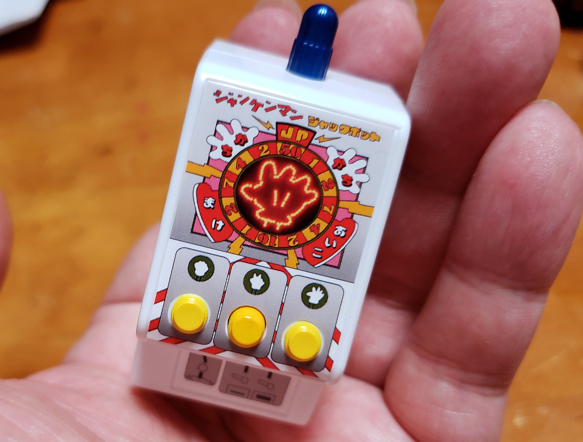 今月に入り、そんな(とくに30代後半以上の方にとっては)懐かしいアイテムがバンダイから販売されました。それが『ガシャポンサウンド ジャンケンマンJP(ジャックポット)』。カプセルトイは当然ながら店舗によって入荷状況が異なりますが、速いところでは絶賛稼働中です。