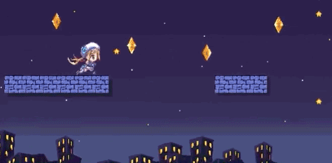 ミスなく走り続けるコツは、ズバリ"足場にサイズに合わせたジャンプ"。飛距離を稼げるからといってダブルジャンプに頼っていると、着地後に踏み切るタイミングを見失ってしまい、かえって落下の危険性が高まりますす。そうならないためにも、足場間の距離が短い場合は1回のジャンプで済ませること。2回目のジャンプは、どうしても跳躍が届かない際に使ってください。