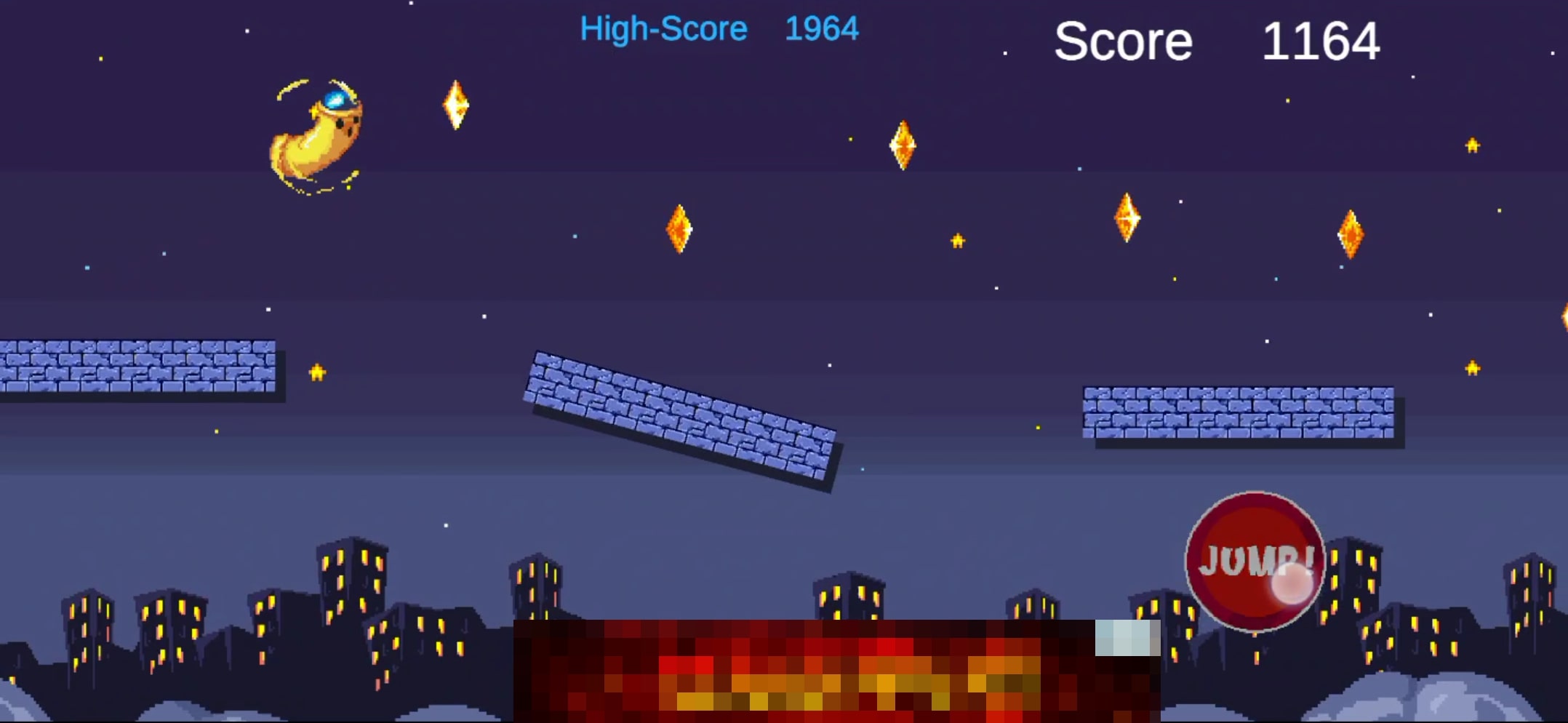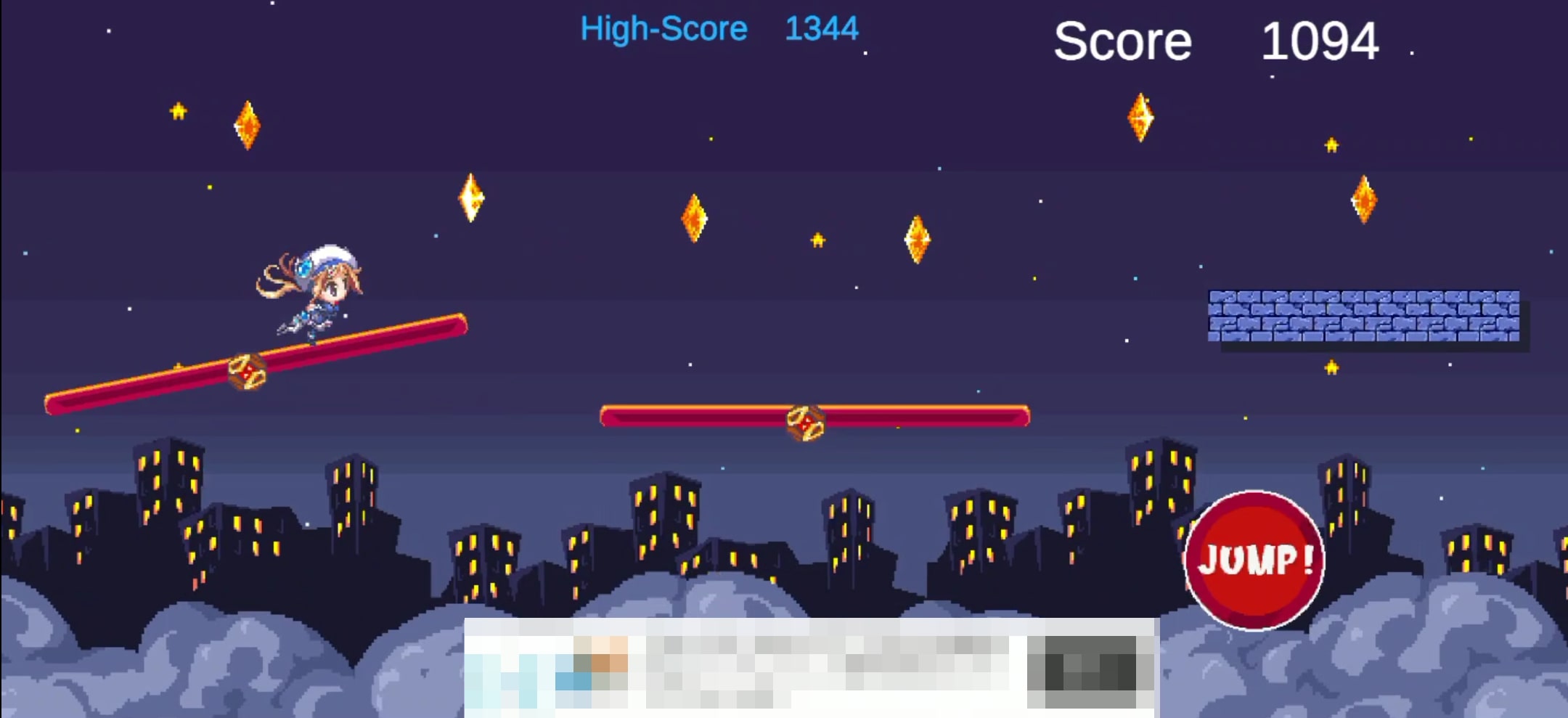 規定以上のスコア(到達距離)を稼ぐと、難度の上昇した新エリアが解放。シーソー状に傾く赤い足場や、乗っていると沈下する雲など、プレイヤーの移動を阻むギミックが出現します。ジャンプの挙動を上手くコントロールし、より丁寧なプレイングを心がけましょう。