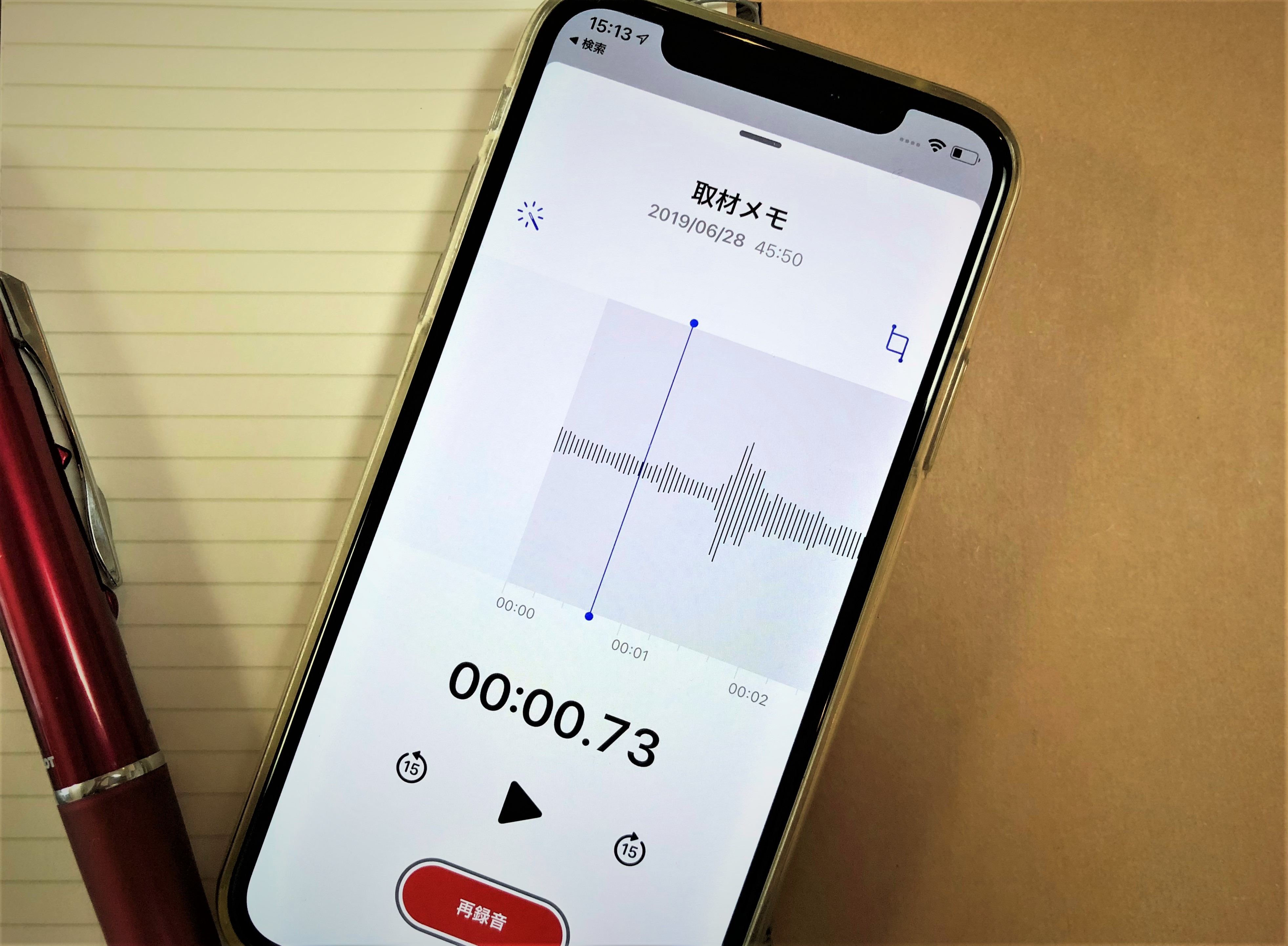 「録音強化機能」が追加され、録音後に編集画面で周囲のノイズや室内の音の反響を抑えられるようになりました。ざわついた環境で録音したときに、あとから聞き取りやすくするのに使える機能です。編集したい録音メモをタップし、左端のボタンを押し、「録音を編集」をタップします。左上のボタンをタップすると、ボタンが青くなり適用されます。
