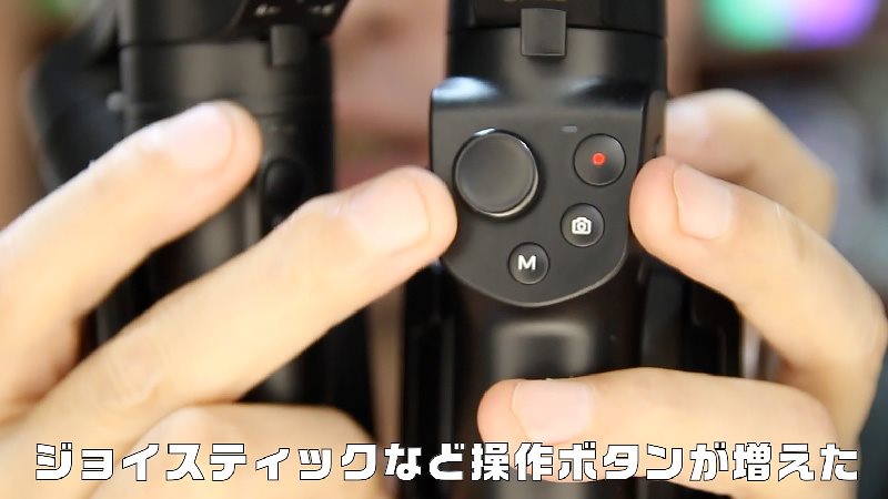 従来は手元のボタン2つと背面トリガーでの操作でしたが、ジョイスティックやズームレバーが増設されてボタン数も増えました。それぞれ独立して操作できるので分かりやすいです。