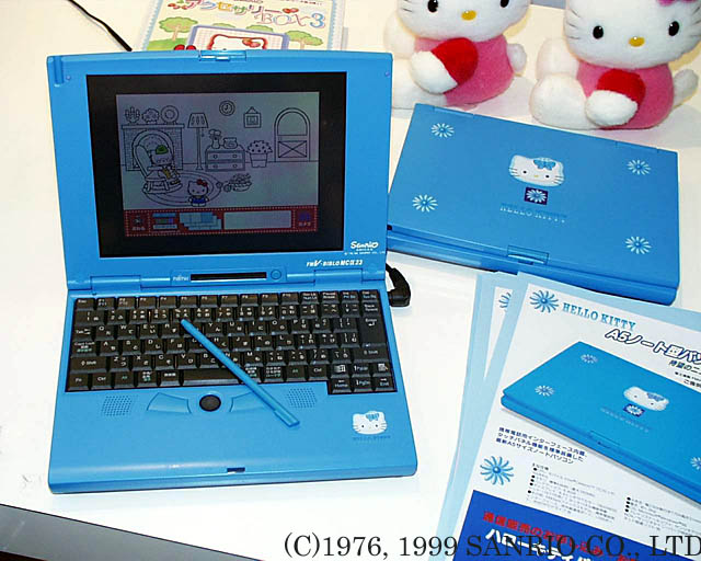 こういったノウハウビジネスは先行者が成功すれば一気に広がります。それは嬉しくもあり危機感もありました。自社のみの特別感がなくなったことで「パソコンとしての価値」をシビアに問われてしまうからです。そうなると価格に見合うスペックが当然実現しないので、割高感が増してしまいます。それでも勢いに乗っている私たちは「FMV-BIBLO MC/30」をベースモデルとし、翌1999年に30万円弱の価格で商品を投入します。前回同様、妥協したもの作りは避けていたので、今回もきちんと天板印刷を施し、カラーも従来のピンクのハローキティではなく、その年の夏にリリースされたハローキティのブルーアゲハモデルという最新キャラクターを配置しました。
