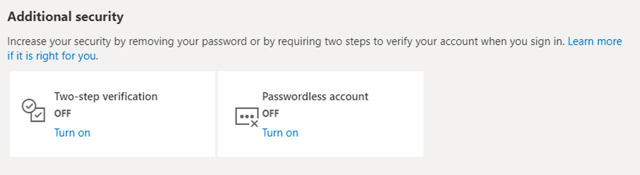 今すぐMicrosoftアカウントのパスワードを削除できるようにするには、まずiOSまたはAndroidでMicrosoft Authenticatorアプリをダウンロードし、個人用のマイクロソフトアカウントと紐付けてください。次に「account.microsoft.com」にアクセスし、「高度なセキュリティオプション」を選択します。「追加のセキュリティオプション」の中に、「パスワードレスアカウント」があるのでこれをオンにします。